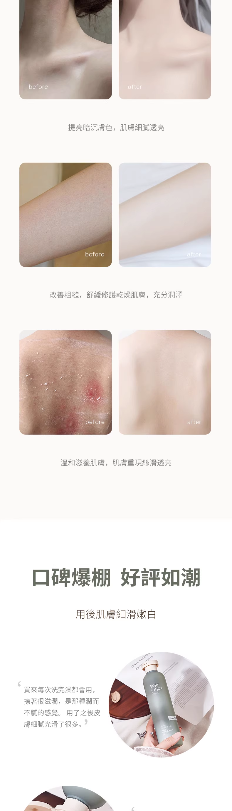 12分鐘前【男朋友抱著我說好香呀】植物香氛身體乳,出汗都是香香的~比香水更迷人,持久留香提亮膚色,保濕滋潤清爽不油膩,高級香味好聞不刺鼻,一天擦一次 走到哪都是香香的~ 免 - 【超值團購】 七入組 -NT$1158(均價低於165)