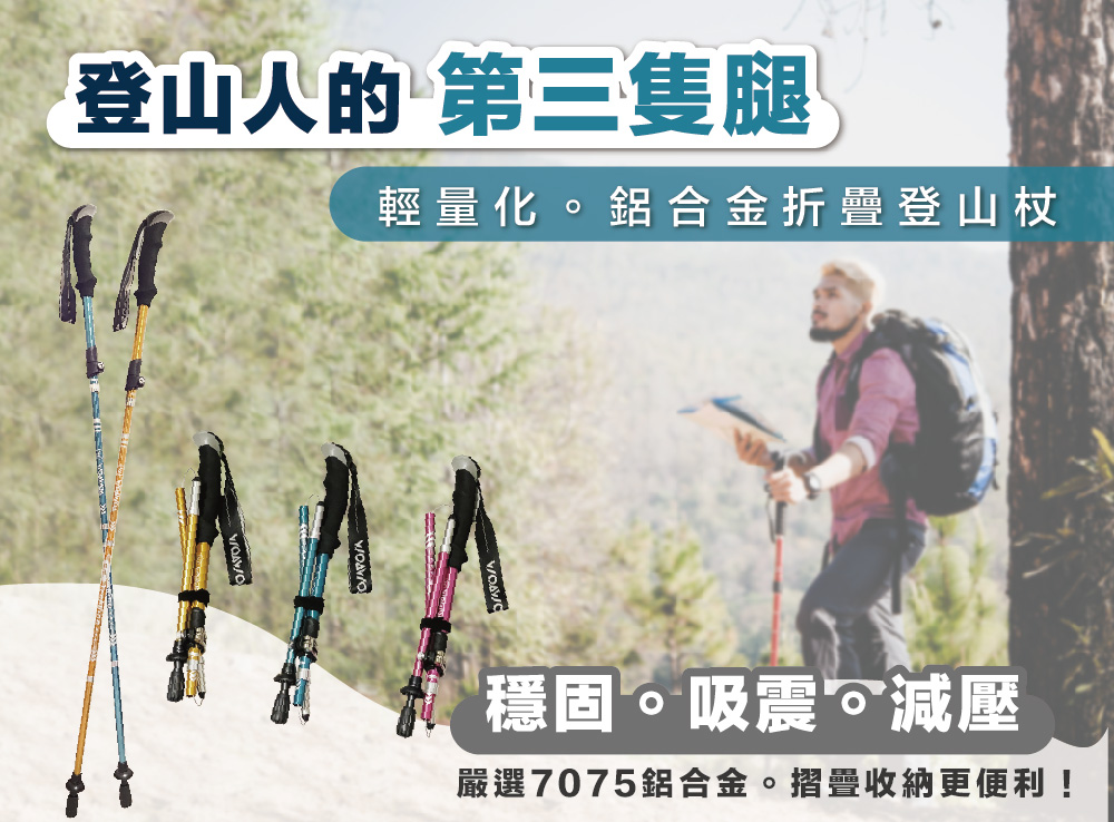 半小時前嚴選7075鋁合金登山杖 重量僅290g!輕便好攜帶 好的登山杖不只幫助減輕上半身重量 更能減緩膝關節、腳踝的衝擊! 讓你的登山旅途更加健康舒適! - 单支NT$990
