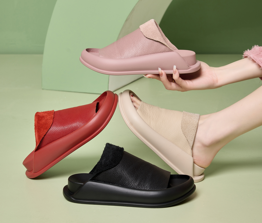 25分鐘前新款復古軟皮純色外穿休閒軟底厚底拖鞋 - 促銷 【今日限定】1入組$999