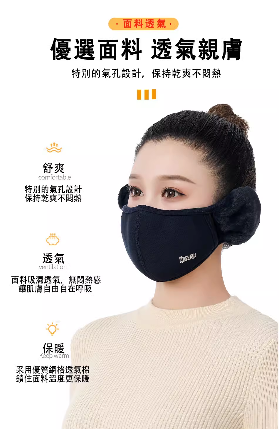 15分鐘前日本進口!台灣本地發貨!【男女同款】秋冬季高颜值纯棉加绒透气防寒防风护耳二合一面罩 - 70%的人選擇【任選五組】5入組NT$1180(均價236/組)